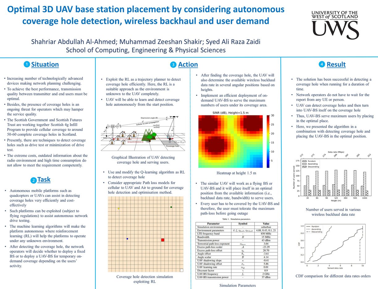 Optimal 3D UAV base station placement by considering autonomous coverage hole detection, wireless backhaul and user demand